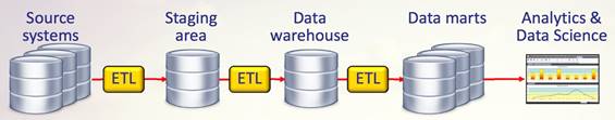 through an extract, transform and load process (ETL) where data is extracted